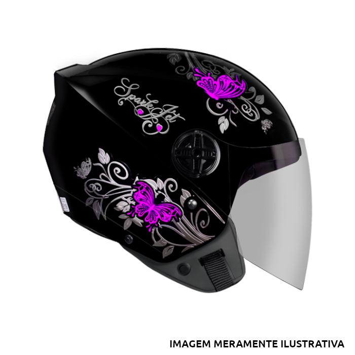 CAPACETE SPARK JET BORBOLETA PRETO & ROSA EBF