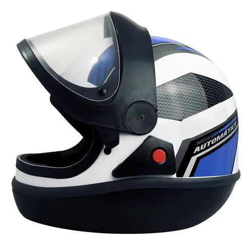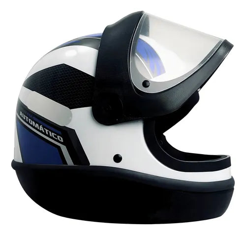 Capacete EBF Automático Branco & Azul : Estilo e Praticidade em um Toque.